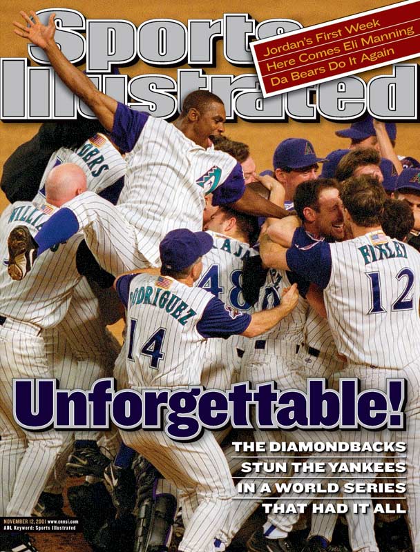 Curt Schilling went pitch-for-pitch with Roger Clemens in a spectacular Game 7, which was topped off by Randy Johnson pitching brilliantly out of the bullpen, and Luis Gonzalez knocking in the series-winning run on a blooper to left-center field.