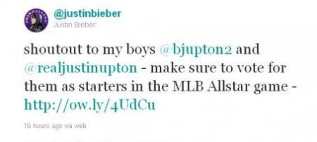 Upton Photo by Greg Salvatore, Bieber photo from Twitter.com/justinbieber
