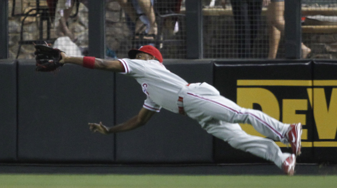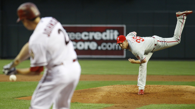 Bloomquist singled to start the inning. When Roberts was up with a 2-1 count and one out, Bloomquist took off running. Roberts made contact, chopping the ball to third. When third baseman Greg Dobbs fielded it and threw Roberts out, Bloomquist was able to advance to third, taking two bases on a ground out.