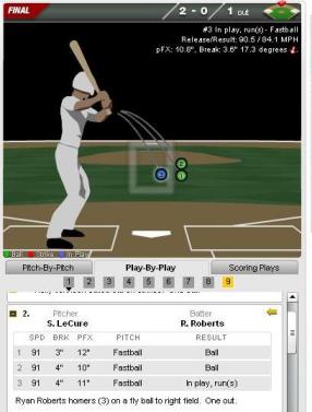 Now in a nice hitter’s count, with a high likelihood of seeing another fastball, Roberts was able to gear up to drive one. He got a great pitch to hit, a knee-high fastball on the outer third of the plate that was travelling, you guessed it, 91 MPH.